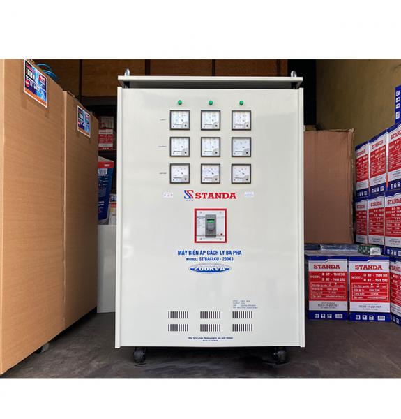 Biến áp cách ly standa 200kva để đổi nguồn từ điện áp 380V sang điện cách ly 220V và 200V 3F sử dụng cho các thiết bị máy móc nhập khẩu từ nước ngoài.