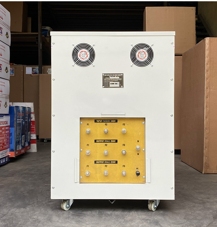 – Điện áp ra 3 pha : Chỉ có một trong hai tiêu chẩn của Nhật là 200v hoặc của Mỹ là 220v ( Đối với biến áp standa 3 pha có công suất lớn hơn 200kva)