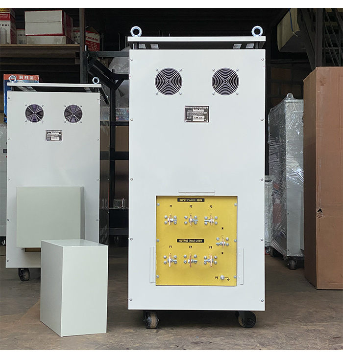 Một điểm cần lưu ý là máy biến áp chỉ duy nhất có tính năng đổi nguồn 3 pha, đầu ra sẽ biến thiên theo đầu vào. Trong trường hợp điện áp cấp bị trồi sụt, không ổn định, đầu ra cũng bị ảnh hưởng. Vì vậy, chúng tôi khuyến cáo quý khách hàng nên sử dụng máy ổn áp Standa 3 pha để khắc phục triệt để tình trạng này; Bởi máy ổn áp Standa 3 pha được tích hợp cả tính năng biến áp.
